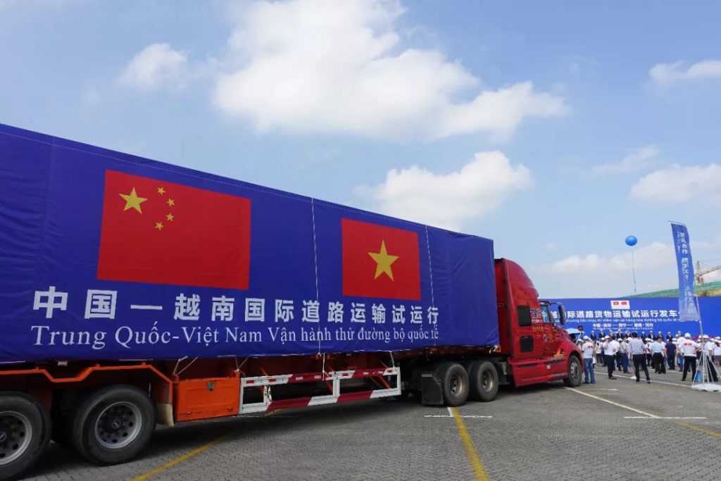 據(jù)悉,此次試運(yùn)行活動(dòng)的線路從中國(guó)深圳經(jīng)廣西連接越南河內(nèi),全程約1309公里,是首次真正意義上中越之間直達(dá)運(yùn)輸。汽車直達(dá)運(yùn)輸比傳統(tǒng)的跨境接駁運(yùn)輸在時(shí)間上可以節(jié)省40%,在運(yùn)輸成本上可以降低約15%,對(duì)于物流業(yè)降本增效成效明顯。